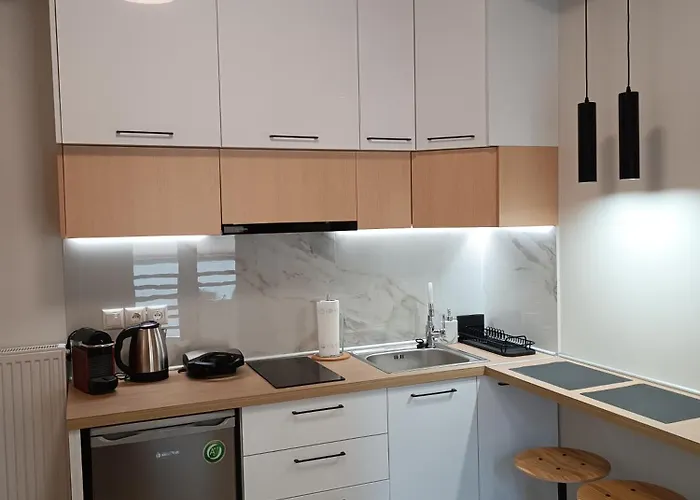 "Meteora Magic" Apartmentsは自炊を希望される方のために設備の整った台所が備わっています。 宿泊施設から徒歩でたった10分ほどの Terminal Line 3バス停からバスに乗って、カランバカの他の地域を探索することもできます。